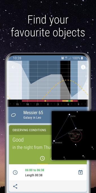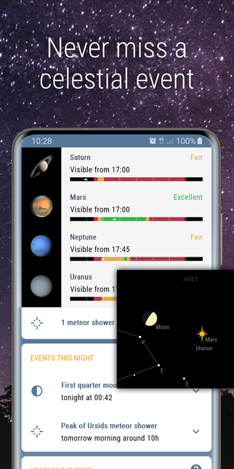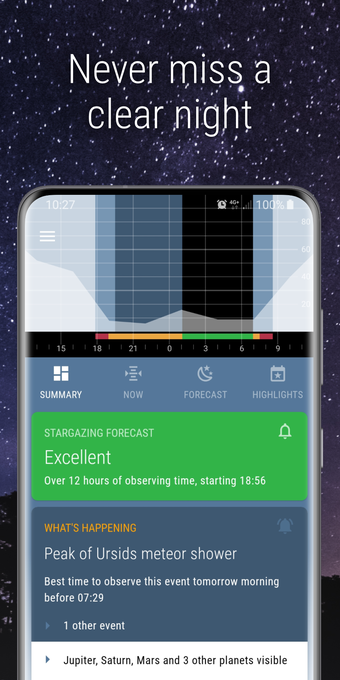 คุณยังสามารถตรวจสอบสถานที่และเวลาของการสังเกตการณ์ที่คุณชื่นชอบได้ในปฏิทินเหตุการณ์และได้รับการแจ้งเตือนเมื่อเงื่อนไขเหมาะสมสำหรับสถานที่สังเกตการณ์ที่คุณชื่นชอบ